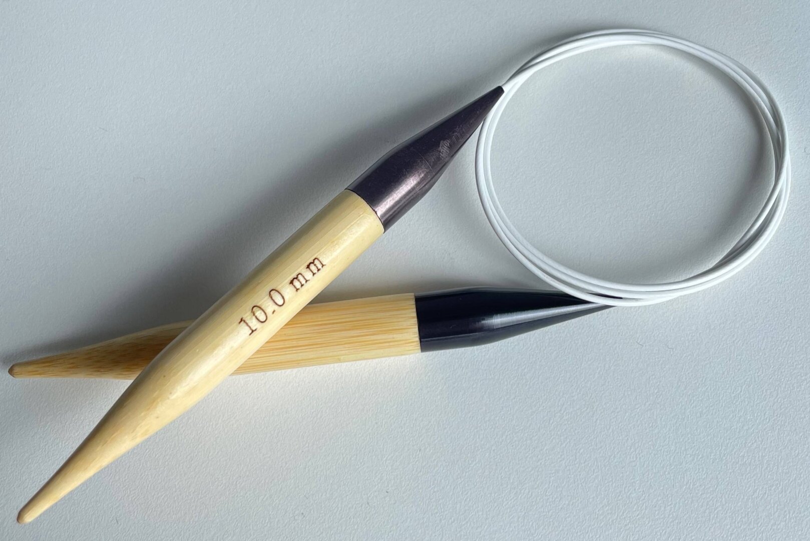 Опис: Спиці рівні, теплі на дотик і неймовірно легкі. Розміри на спицях нанесені лазерний гравіюванням, яке з часок не стирається. Гострі та поступово звуженні бамбукові наконечники ідеально підходять для всіх типів в'язання. Дуже тонка, ювелірно виконана обробка забезпечує ідеальне гладке з'єднання між металом та бамбуком, між металом та ліскою.