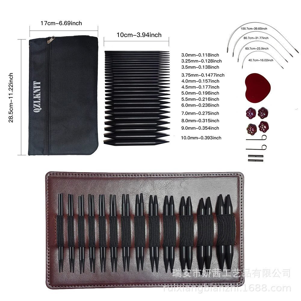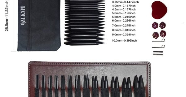Розмір: довжина спиць - 10 см, 13 пар спиць розміром від 3,0 мм до 10,0 мм (3,0; 3,25; 3,5; 3,75; 4,0; 4,5; 5,0; 5,5; 6,0; 7,0; 8,0; 9,0; 10,0)